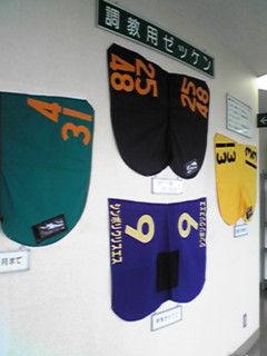 調教用ゼッケン。G1馬になると名前が入れてもらえるんだって。