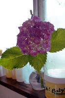 庭のアジサイをバスルームに飾ってみました。うん、季節感バリバリ。