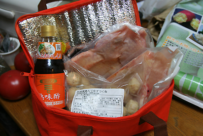 阿波尾鶏の胸肉+ももにく+肉団子(計1kg)でしょ、ミツカンさんのお酢でしょ、