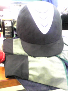 チャップスとヘルメットを合わせます。