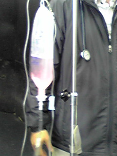 1リットル2分くらいの速度で一度に16リットルくらい点滴するとのこと。