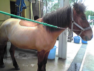 すっかり満足したところで、厩舎へ戻り、おうまの手入れ。