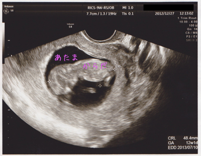 最終生理日からの計算だと9週4日なのだけど、実際の赤子サイズから8週6日に訂正されました。