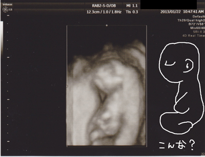先生いわく「妊娠はしているけど、まだはっきりはわからんなー」とのコト。