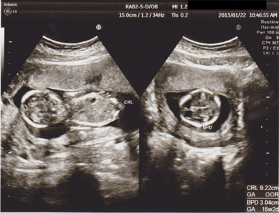エコー写真(大きさから週数推定?)には「15w2d」と書いてあるのだけど、