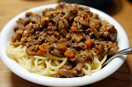 てわけで、今日は丸井義男式ミートソースを作ってみた。
