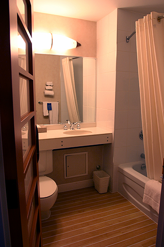 写真はバスルーム。ウッディな床は非常に好み。