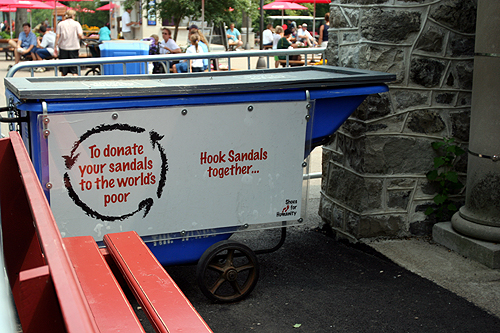 使い終わったズブ濡れ靴は、世界の恵まれない人に寄付してもよし(写真のBOXに投函)、記念として持って帰ってもよし。