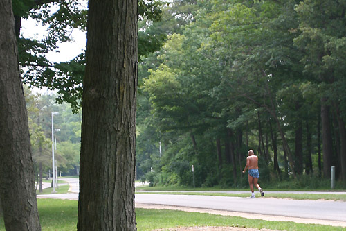 炎天下の中ジョギングに余念のないオジサン。