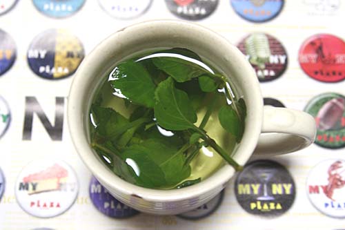 庭からミントを摘んできて、生ミントティー。すっきり爽やかな飲み心地。フレッシュ!