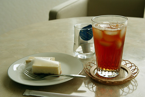 仕事終了後に入った「アリスガーデン」てカフェではチーズケーキと飲み物がセットで500円と非常にリーズナブルだった!