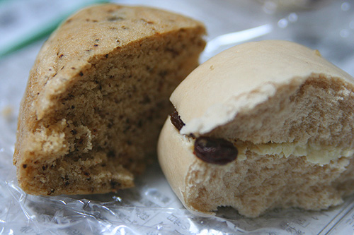 ジャスミンティーの蒸しカステラと、クリームチーズ&ラムレーズンのはいった中華饅頭。